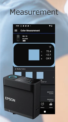 Oplev en verden af farvepræcision og kreativ frihed med den intelligente ledsager til dit Epson SD-10 spektrofotometer. Denne app forvandler din mobile enhed til et avanceret farvehåndteringscenter, der problemfrit integreres med SD-10 via Bluetooth®. Uanset om du arbejder med indendørs tryksager, farvekollektioner eller kræver nøjagtige målinger af udendørs skilte og tavler, gør appen det muligt at fange, importere og organisere farvedata med uovertruffen lethed og uden besværlige kabler. Den intuitive tilgang gør professionel farvestyring tilgængelig og effektiv for alle.