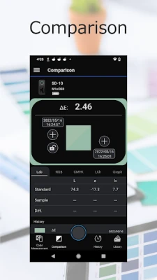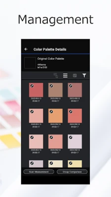 Appen er mere end blot et måleinstrument; den er et kraftfuldt værktøj til farveanalyse og -styring. Sammenlign målte farver med dine eksisterende farvekollektioner for at bestemme præcise farveforskelle, og vurder om farverne kan reproduceres nøjagtigt af din printer. Du kan nemt justere farvemålinger for at skabe nye nuancer og berige dine farvedata med vigtige oplysninger som favoritter, lokation, fotos og noter. Skab skræddersyede farvepaletter og Color Collections, og integrer dine kreationer direkte i Adobe® Illustrator® og Photoshop® ved at generere kompatible Color Swatch- og Color Book-filer for en sømløs arbejdsgang.