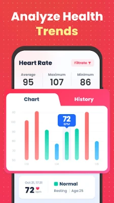 "Heart Rate: Heart Rate Monitor" måler din puls præcist på få sekunder uden professionelt udstyr. Se historik, gem data i skyen, og del nemt målinger med læger. Hold styr på dit hjerte og din sundhed.