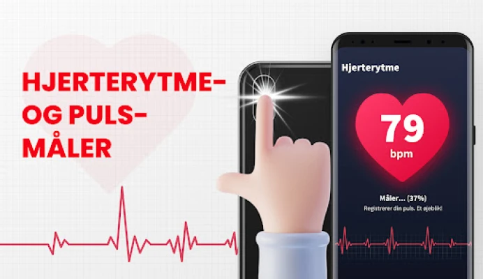 **Vigtig ansvarsfraskrivelse:** Hjerterytmemåler er et supplement til personlig velvære og bør ikke anvendes som medicinsk udstyr til diagnosticering af hjertesygdomme. Appen er ikke beregnet til brug i medicinske nødsituationer; kontakt altid en sundhedsprofessionel ved behov for hjælp. Bemærk venligst, at LED-lommelygten på visse enheder kan blive varm under brug af Hjerterytmemåler.