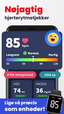 Er du nysgerrig efter dit hjertes velbefindende? Hjerterytmemåler tilbyder en intuitiv måde at forstå og følge med i din hjertesundhed på. Tilslut dig de over 10 millioner brugere, som allerede benytter Hjerterytmemåler til at skabe et klart overblik over deres vitale tegn, med en enkel og brugervenlig tilgang direkte fra deres smartphone.