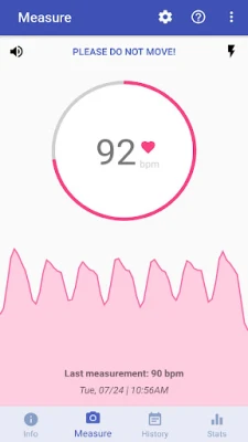 Oplev en banebrydende og ubesværet måde at overvåge din puls på direkte fra din smartphone. Med vores innovative app kan du nemt forvandle din telefons kamera til en præcis pulsmåler, der leverer resultater på få sekunder. Du skal blot placere din fingerspids forsigtigt over bagkameraets linse, holde dig stille, og se din puls (BPM) blive talt. Ingen dyre gadgets, ingen besvær – og bedst af alt, alt dette får du helt gratis. Nyd ubegrænsede målinger og fri adgang til alle funktioner, uden skjulte omkostninger.