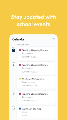 Udover at være en kilde til information fungerer St. Francis de Sales School appen også som et kraftfuldt værktøj for fællesskabets interne kommunikation. Den inkluderer en brugervenlig oversigt over St. Francis de Sales Schools vigtigste kontaktpersoner, så du hurtigt kan finde kontaktoplysninger for lærere, forældre, studerende og alumner. Med blot et par tryk kan du ringe eller sende en e-mail direkte til en person fra din enhed, hvilket strømliner kommunikationen og styrker netværket inden for St. Francis de Sales School. Få nem adgang til den aktuelle fællesskabsmappe, uanset hvor du er.