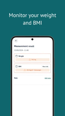 Efter hver måling modtager du en detaljeret rapport med klare og handlingsrettede råd. Disse rapporter kan nemt deles med din egen læge eller kardiolog, hvilket sikrer, at dine sundhedsdata altid er tilgængelige for fagfolk. Skulle FibriCheck registrere en uregelmæssighed, har du mulighed for at anmode om en gennemgang af dine resultater af vores team af medicinske eksperter. Udvid din sundhedsovervågning ved også at logge dit blodtryk og din vægt direkte i appen. Få automatisk beregnet dit BMI, og integrer alle dine data – herunder noter og symptomer – i de samlede rapporter, som kan videreformidles til din læge. At holde øje med din vægt er afgørende, da overvægt udgør en risiko for hjerte-kar-sygdomme.