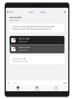Oplev en hidtil uset bekvemmelighed, hvor du kan udfylde og signere juridiske dokumenter og spørgeskemaer med få tryk. Send beskeder og dokumenter direkte til din sagsbehandlers indbakke hos Francis George Solicitor-Advocate uden besværet med at skulle angive referencenummer eller endda et navn. Dette strømliner processen og sikrer, at din kommunikation altid når frem, hvor den skal. Francis George Solicitor-Advocate appen er designet til at give dig ro i sindet, ved at samle alle aspekter af din juridiske sag i en sikker, lettilgængelig og effektiv digital oplevelse, tilgængelig 24/7.