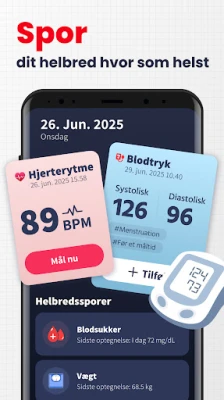 **Vigtig ansvarsfraskrivelse:** Hjerterytmemåler er et supplement til personlig velvære og bør ikke anvendes som medicinsk udstyr til diagnosticering af hjertesygdomme. Appen er ikke beregnet til brug i medicinske nødsituationer; kontakt altid en sundhedsprofessionel ved behov for hjælp. Bemærk venligst, at LED-lommelygten på visse enheder kan blive varm under brug af Hjerterytmemåler.